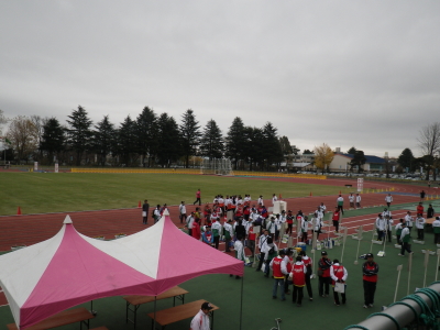 今回もBSのランスマが取材、金さんが50代でのサブ3目指し走る姿を放映するようだ。金さんは見事サブ3達成! 今にもふり出しそうな曇り空の下、10時フルマラソンスタート。 |