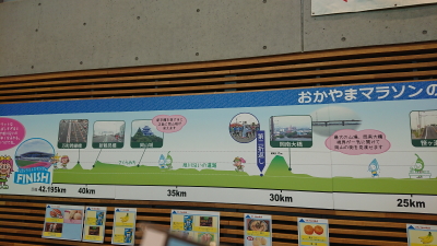 | 11月10日 旅RUN40都道府県目となる岡山で第5回岡山マラソン走ってきました。昨年は抽選ハズレ、2回目のエントリーで当選し念願の岡山RUNです。 9日(土)朝10:33の新幹線で名古屋を出発、岡山には12時14分到着。そのまま、受付会場となるジップアリーナ岡山へ。受付で本人確認を済ませゼッケン受取りEXPO会場へ向かう。飲食屋台がたくさん出ている中、デミカツ丼500円を購入。第一生命ブースで目標タイムの記念写真。今回はちょっと欲張りな3時間20分と申告。その後、参加賞のTシャツを受取り、有森さんらのコース解説を少し聞いた後、歩いて40分ほどかけてホテルへ。 昨年は抽選で外れたので走れませんでしたが、エントリー開始日にはすでに周辺ホテルは予約が取れない状況だったので、今回はエントリー前に宿を予約、それでも会場周辺はとれず、なんとか40分以上離れたアビスイン岡山を抑えることができました。会場への移動でかなり疲れてしまうので、もし来年以降も走るなら出走権付のツアーを利用したいと思います。 夕食はまた歩いて岡山駅近くのイオンへ。あなごと牡蠣どんぶりを注文したつもりでしたが、間違えてあなごと鰻どんぶりが出てきました。それでもごはん大盛りが注文できたのでおいしくいただくことができました。 マラソン前日にも関わらず、荷物持って結構歩いてしまったので肩こりがひどく辛い。なんとかしたいと部屋のシャワーで5分ほど肩にお湯をあて気持ち改善。早めに就寝。 |